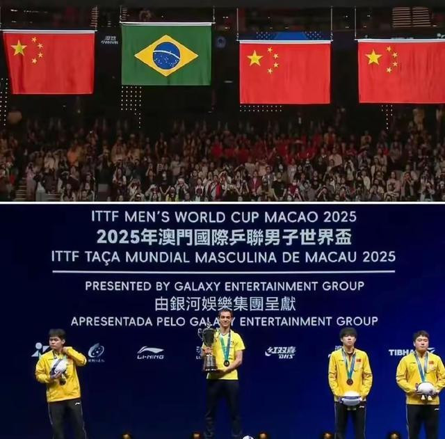 2025年国际乒联世界杯在澳门落下帷幕,巴西选手雨果接连赢过张本智和王楚钦,林诗栋夺得男单冠军,第一次在决赛的颁奖现场响起了外国国歌。